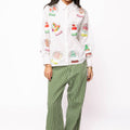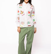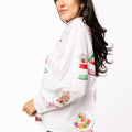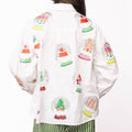 Wrap yourself in cozy charm with this White Cotton Snow Globe Button Up Long Sleeve Top. Crafted from soft cotton, it offers comfort and breathability, while the playful snow globe motif adds a whimsical touch to your everyday style. Perfect for layering or wearing solo, this top brings a fresh, festive vibe to your wardrobe all year round.