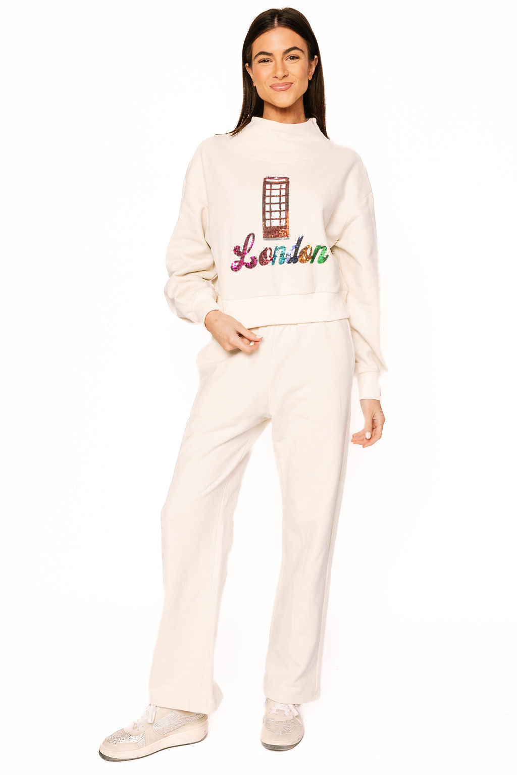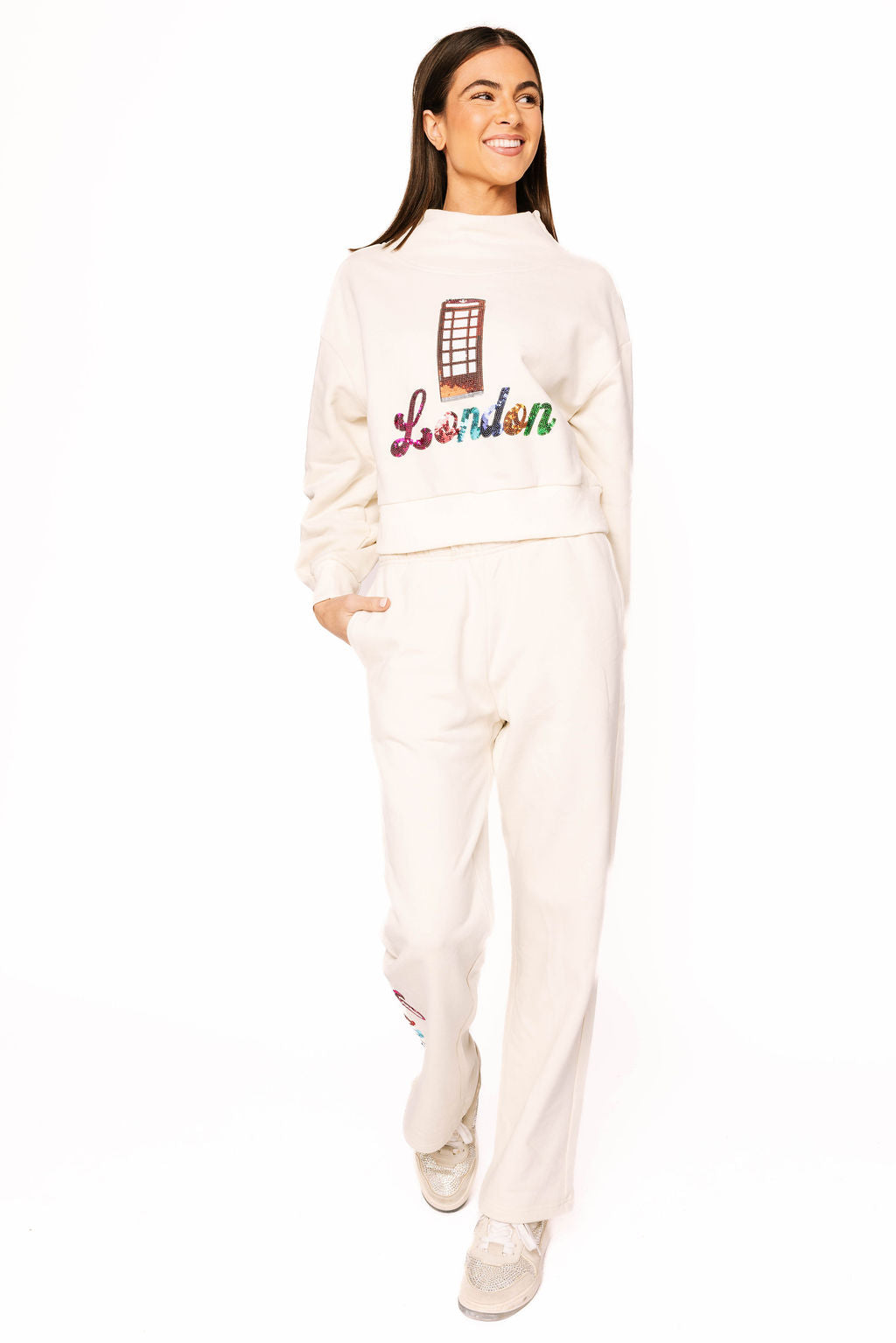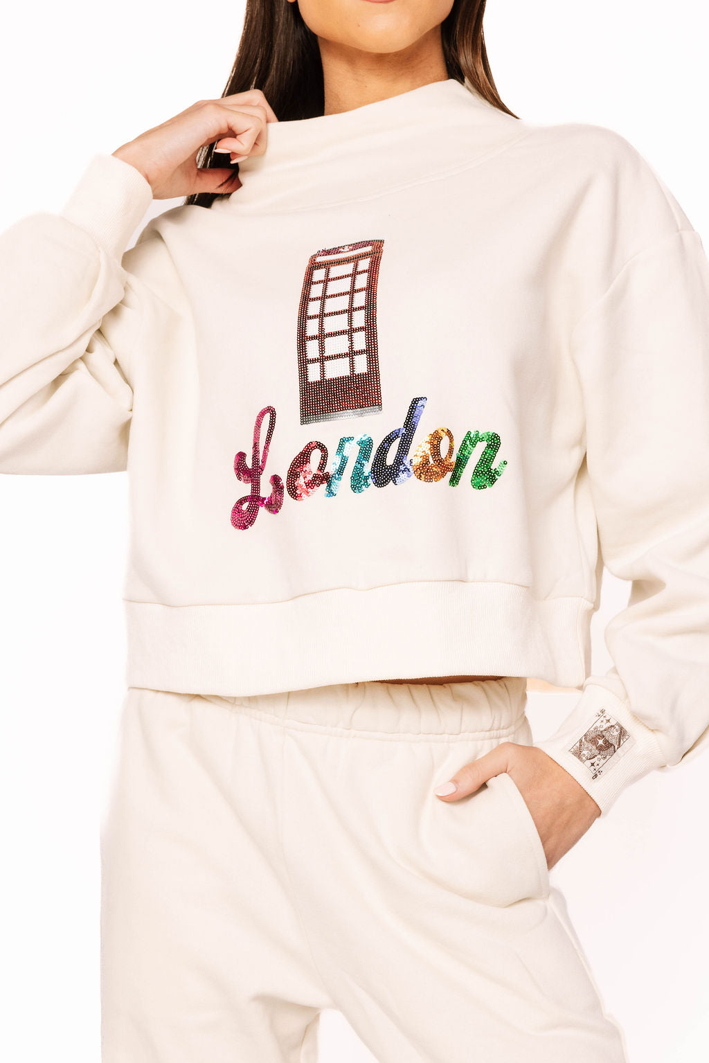 Sample Light Beige 'London' City Icon Mock Neck Sweatshirt