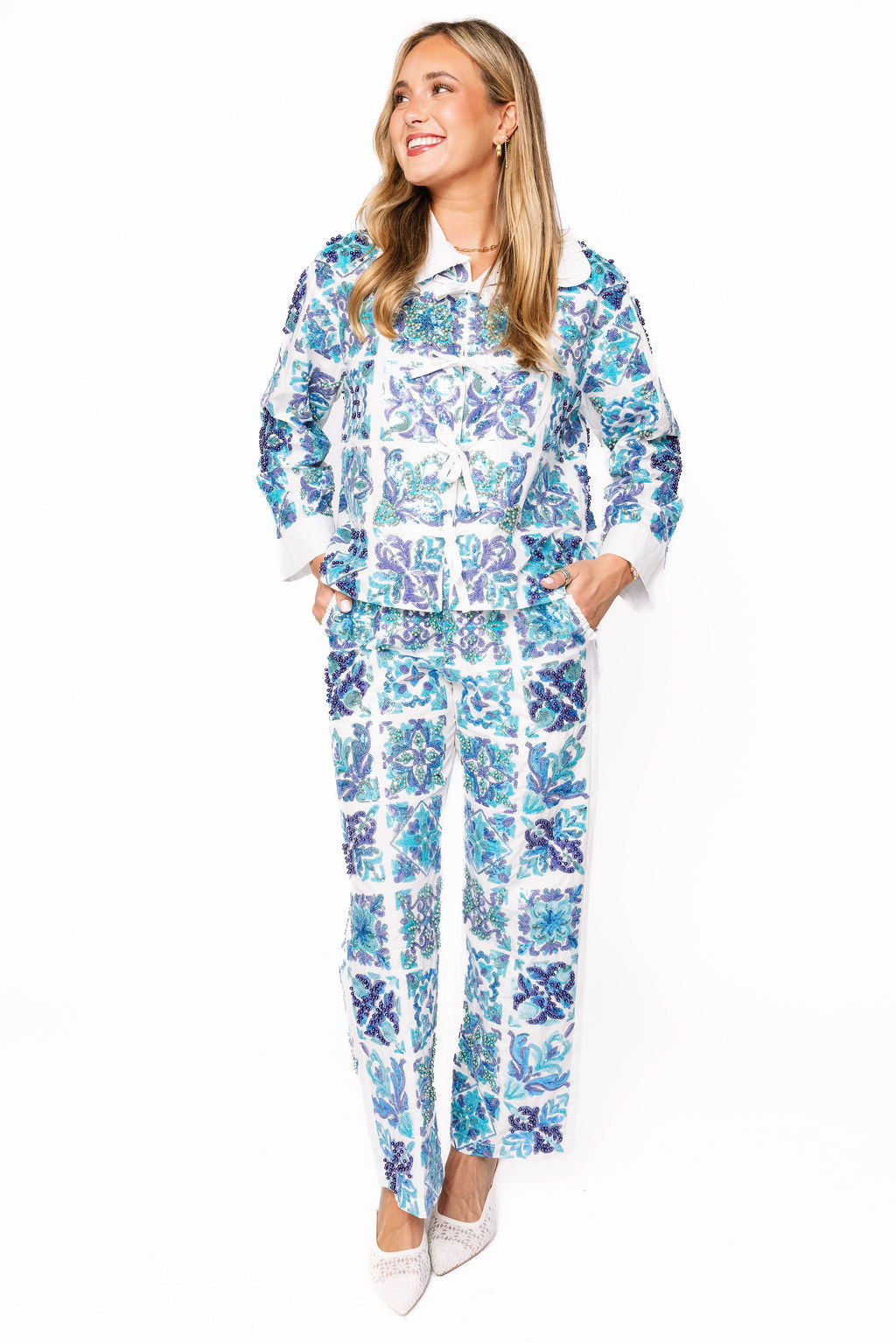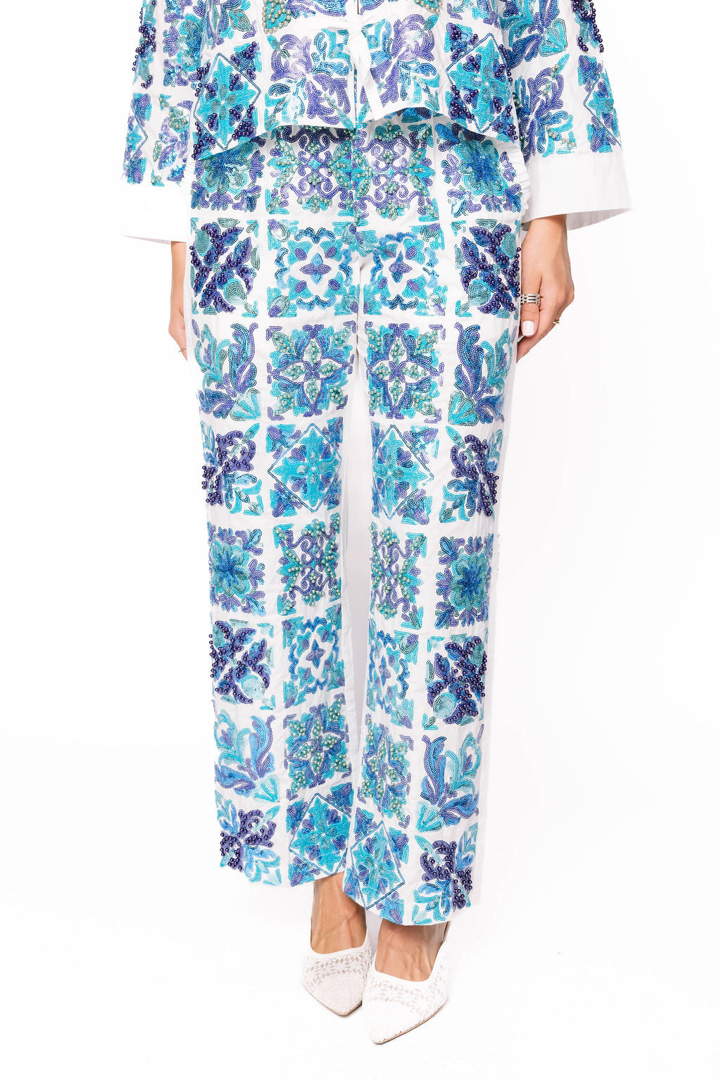 Sample White & Blue Italian Tiles Pant