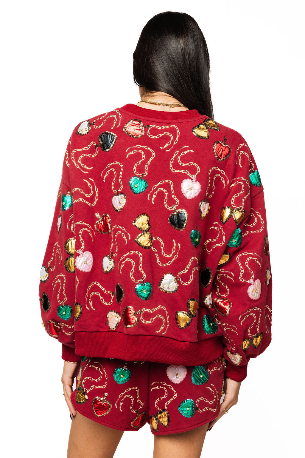 Sample Maroon Multi Heart Lockets Sweatshirt and Short Set