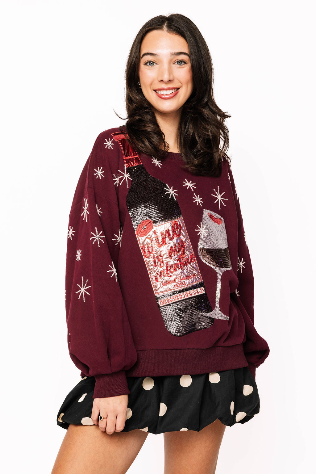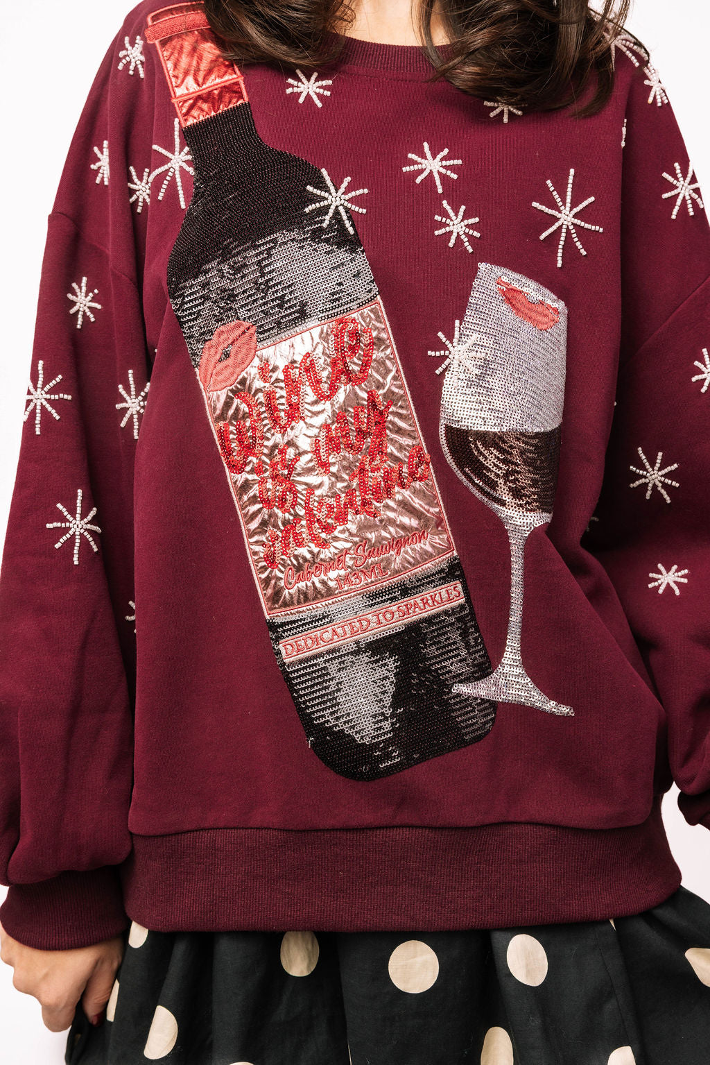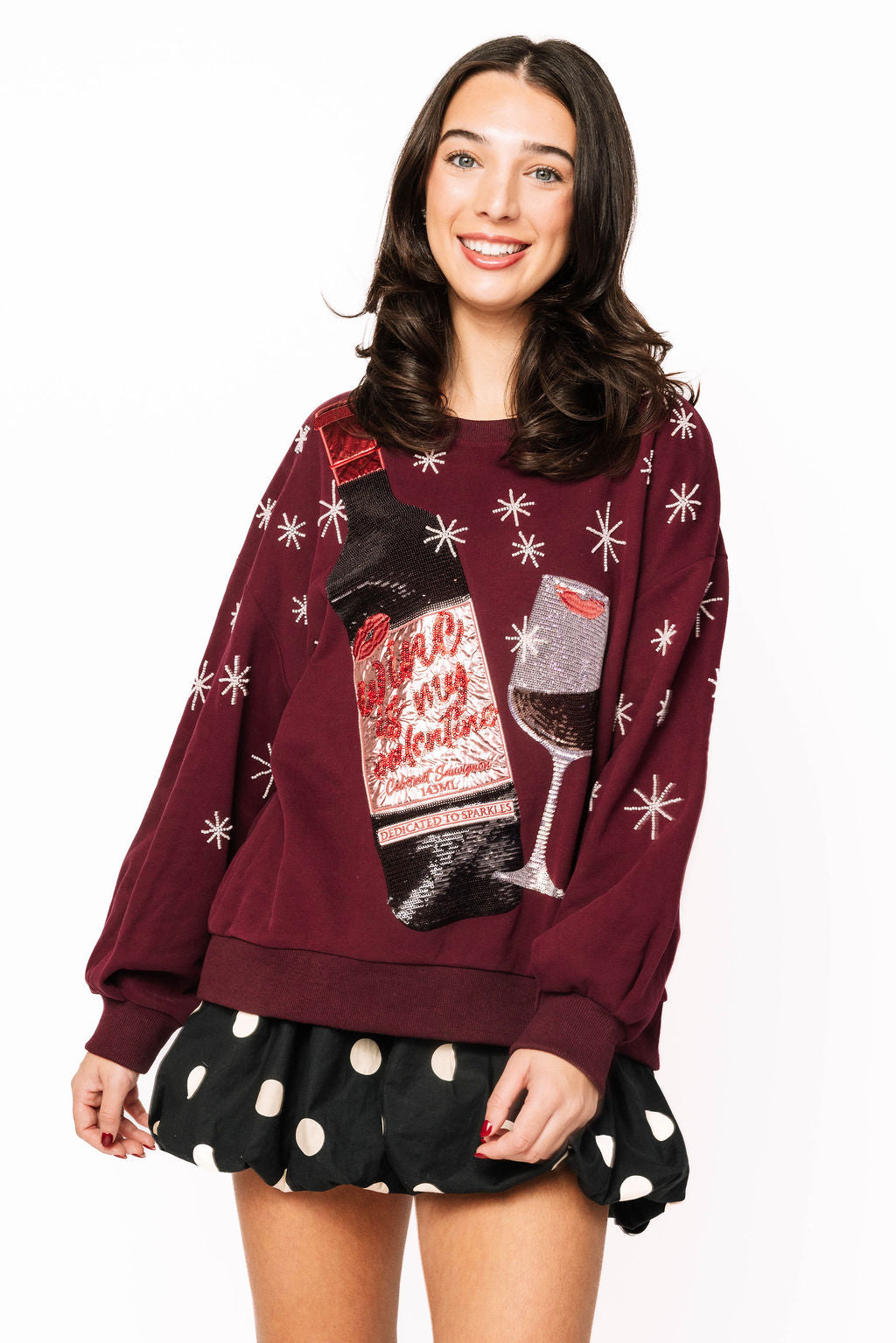 Raise a glass to your favorite Valentine with this maroon sweatshirt featuring a charming wine bottle and glass design. The bottle's label playfully declares "Wine is my Valentine"—perfect for wine lovers who know their priorities. Cozy, comfortable, and unapologetically fun, this piece celebrates the romance of a good pour. Whether you're treating yourself or gifting a fellow wine enthusiast, this sweatshirt delivers style with a wink and a sip.