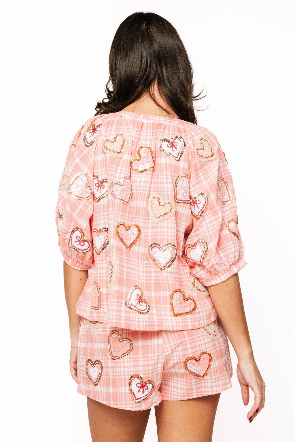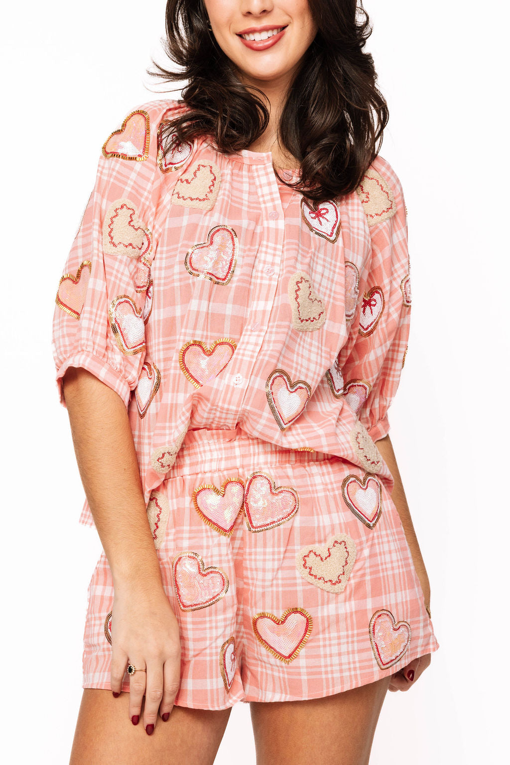 Get ready to turn heads in these adorable light pink and white plaid shorts featuring sweet heart and cookie designs. With their playful pattern and flattering fit, these shorts are perfect for anyone who loves a touch of whimsy in their wardrobe. The soft, comfortable fabric keeps you feeling great all day long, whether you're lounging at home or out having fun. Mix and match with your favorite tops for endless styling possibilities—because life's too short not to wear something that makes you smile.
