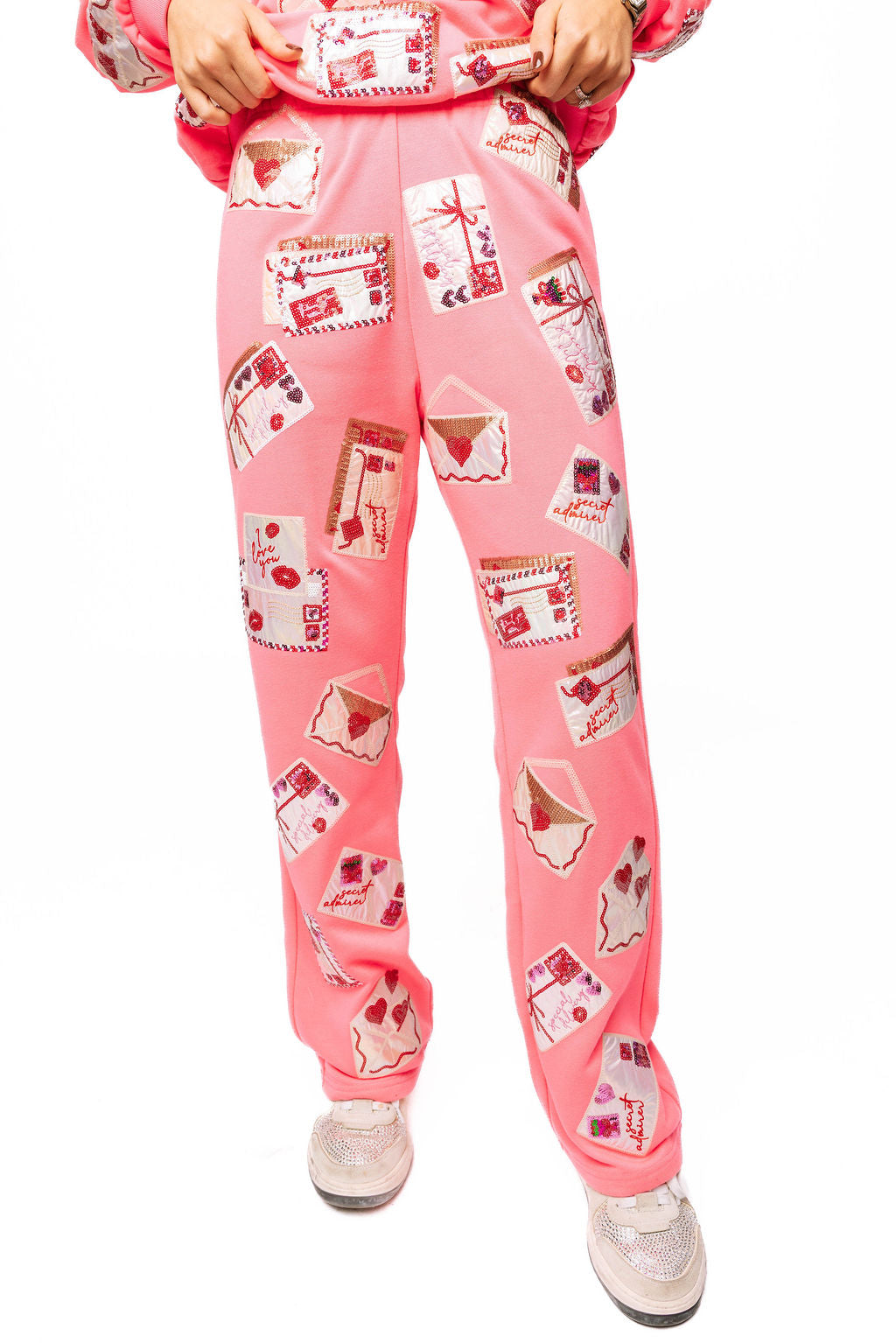 Make a bold statement in these vibrant neon pink sweatpants adorned with playful love letter designs. These aren't your average loungewear—they're a fun declaration of style that turns heads and spreads joy. The eye-catching neon hue paired with romantic letter details creates an irresistible combo that's perfect for anyone who loves to stand out. Crafted from soft, cozy fabric, they're ideal for lazy days, casual hangouts, or whenever you want to rock a look that's unapologetically fun and full of personality.