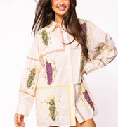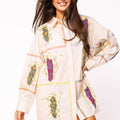 Beige Button Up Multi Corn Cotton Collar Dress