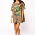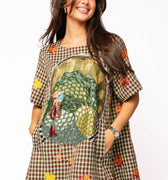 Brown Plaid Big Turkey & Leaves Short Sleeve Dress