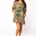 Get ready to turn heads with this Brown Plaid Big Turkey & Leaves Short Sleeve Dress! Featuring a festive turkey and leafy design on cozy brown plaid, this dress brings autumn fun to your wardrobe. Its comfortable short sleeves make it perfect for all-day wear, whether you're feasting or dancing. Celebrate the season in style and comfort with a playful twist!