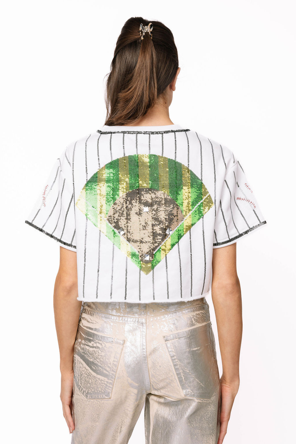 Sample White & Black Pinstripe Baseball Button Up Top