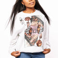 Rock the court in style with this grey sweatshirt featuring our iconic queen card logo reimagined with a basketball twist. Perfect for the Queens of the Court who bring their A-game both on and off the hardwood. Cozy, comfortable, and unapologetically fierce—because royalty doesn't sit on the sidelines.