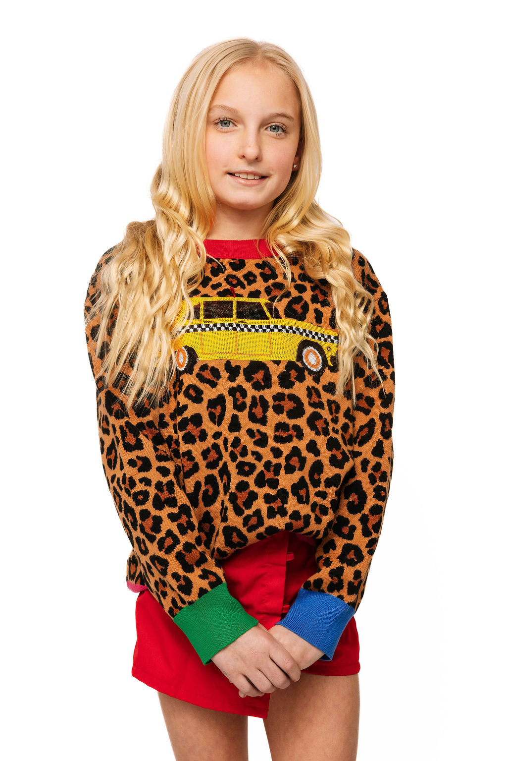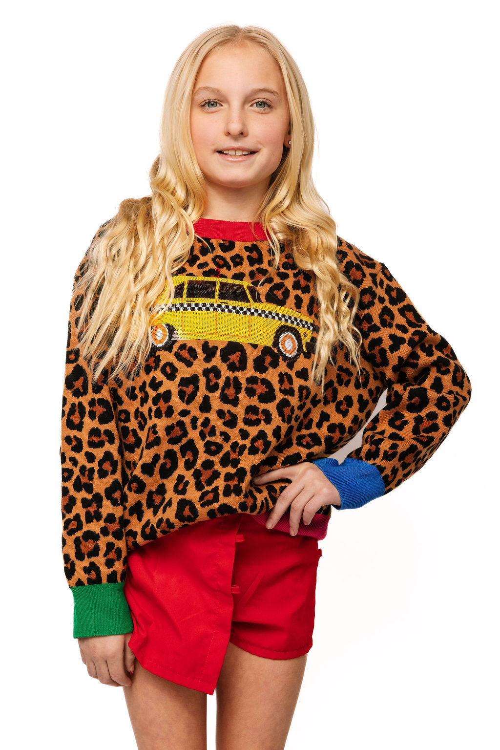 This adorable leopard sweater brings fun and flair to any wardrobe! Featuring a playful sequin taxi cab design on the front and vibrant colorblock trim, it's the perfect statement piece for little fashionistas. The best part? It comes in adult sizes too, so you can match with your mini me. Cozy, cute, and totally sparkle-worthy!