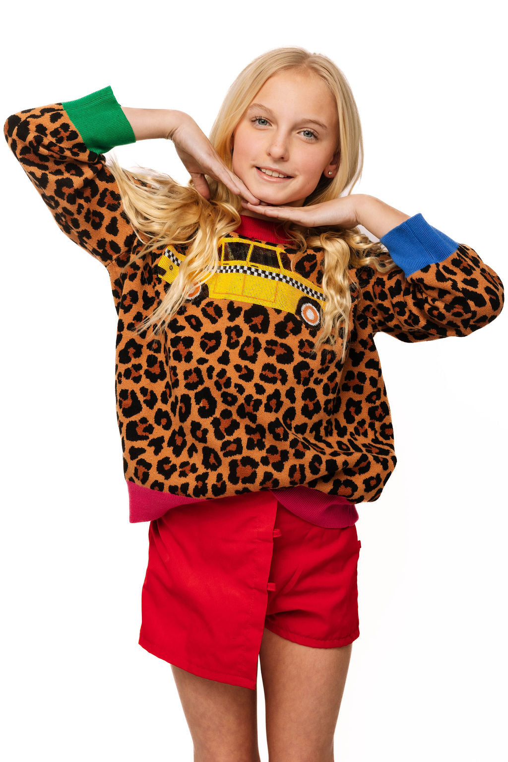 Kids Leopard Colorblock Trim Taxi Cab Sweater
