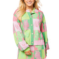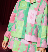 This skirt features bold pink and green colorblocking paired with stunning profile artwork of Glinda and Elphaba—two sides of one unforgettable story. Playful, eye-catching, and perfect for making a statement, it’s a must-have for fans who love a mix of charm and edge in their wardrobe.