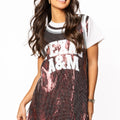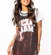 Game day just got a whole lot cuter! This officially licensed Texas A&M basketball jersey dress combines school spirit with effortless style. Featuring authentic team colors and graphics, it's perfect for cheering on the Aggies in comfort. Whether you're heading to the stadium, tailgate, or just showing your Maroon pride around town, this dress lets you rep your team with personality. Soft, flattering, and undeniably fun—because supporting your squad should feel as good as it looks!