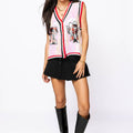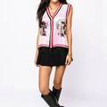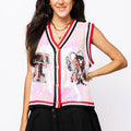 Licensed- White, Red & Black Texas Tech Full Sequin Button Up Sweater Vest