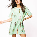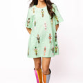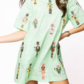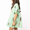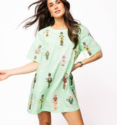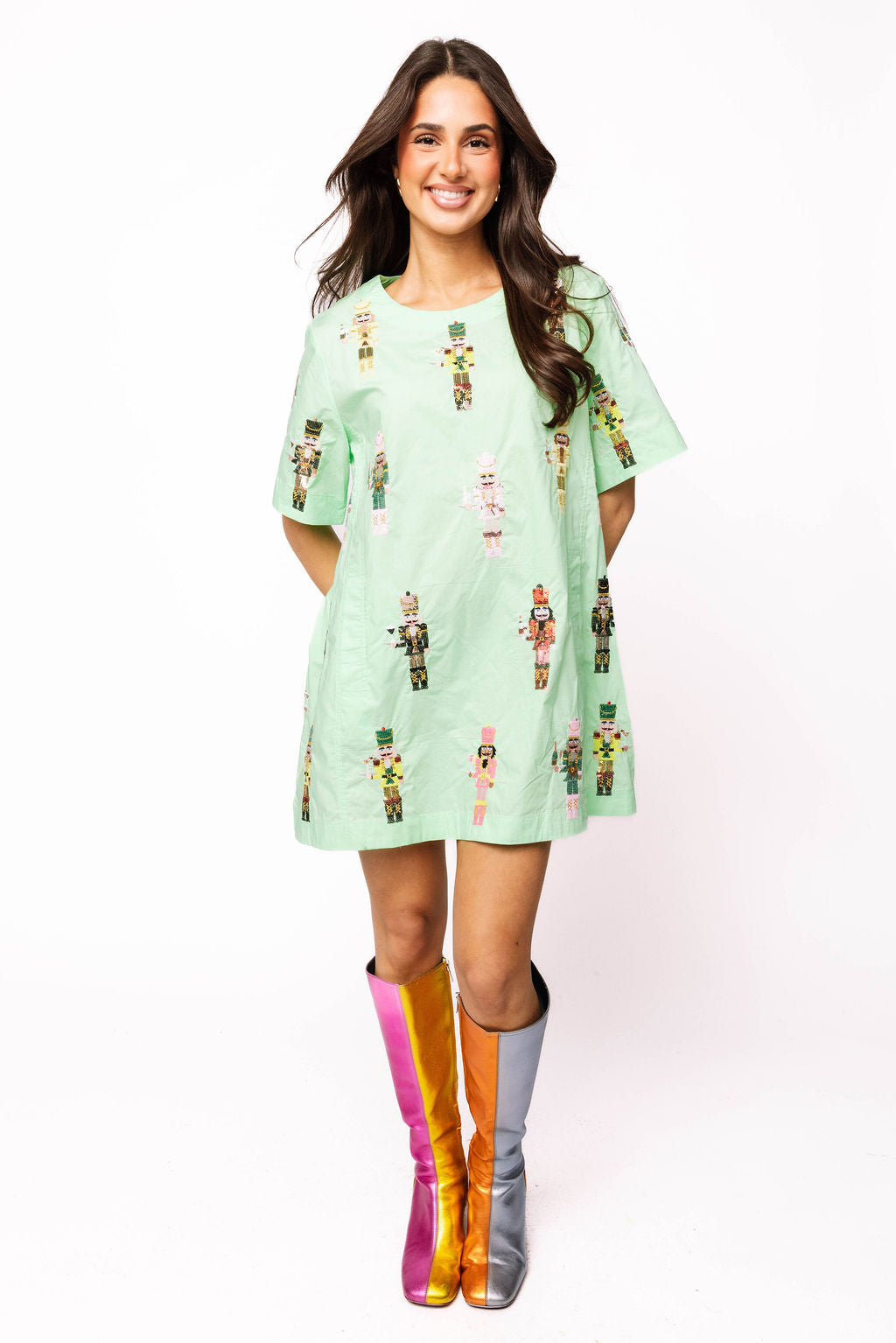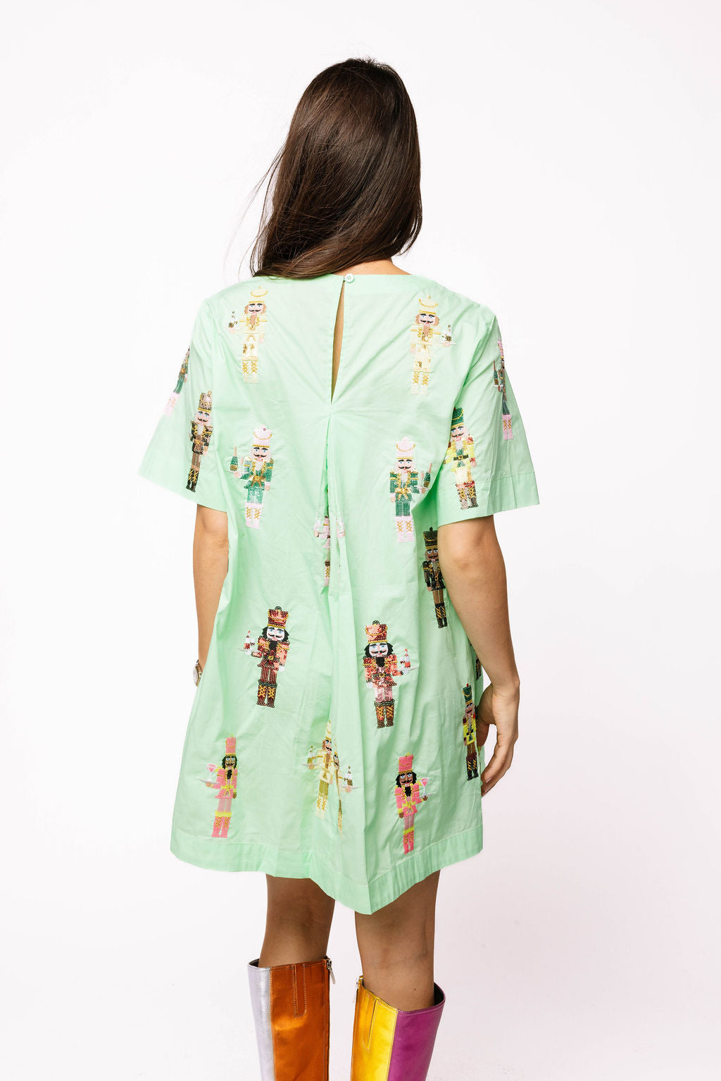 Mint Cocktail Serving Nutcracker Short Sleeve Cotton Dress