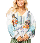 Celebrate every day like the Macy’s Thanksgiving Day Parade with our Multi Thanksgiving Parade Button Up Cardigan. This cozy, slightly oversized cardigan brings nostalgic parade vibes to your wardrobe with charming details that stand out. Perfect for layering, it adds a fun and festive touch to any outfit while keeping you comfortably warm. Step into a joyful tradition and spread some parade magic wherever you go!