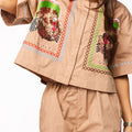 Tan Cotton Embroidered Trim Turkey Button Up Collar Top