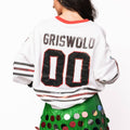 Celebrate holiday cheer with the White Clark Griswold Jersey Sweatshirt, a cozy tribute to the unforgettable Christmas classic. This soft, comfy sweatshirt channels the spirit of the ultimate festive family adventure, making it perfect for those who love to deck the halls with laughter and light. Slip it on and embrace your inner Griswold as you spread merry mischief and holiday joy wherever you go.