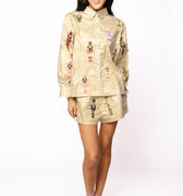 Gold Metallic Stripe Cocktail Serving Nutcracker Button Up Top