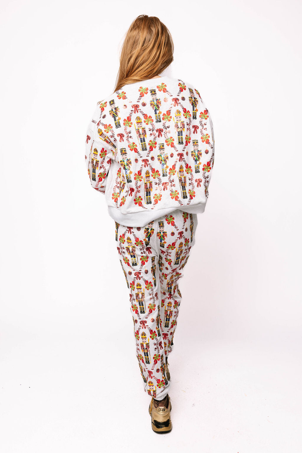Step into holiday cheer with the Grey Nutcracker & Candy Cane Pant! These cozy pants bring festive fun to your wardrobe with whimsical nutcracker and candy cane patterns. Perfect for lounging or holiday parties, they offer comfort and a playful spirit that keeps the season bright and merry. Celebrate in style and ease all day long!